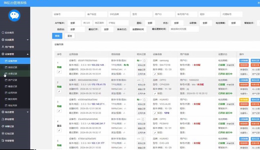 网页版远程操控,支持多人多机同时操控,后台数据永久保存